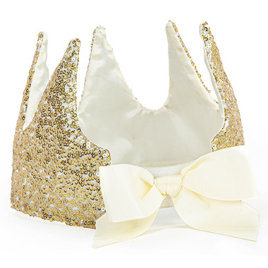 - Soft-sided crown is embellished with gold sequins and it's lined with soft ivory satin