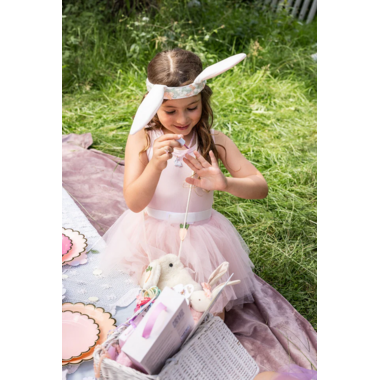 The Hippity Hop Bunny Ears and Tail Accessory Set is perfect for hopping around all day long! This adorable set features soft, furry bunny ears attached to a comfortable stretchy headband adorned with flowers, making them easy to wear for hours of fun! The matching furry bunny tail, secured on an elastic band, is perfect not just for Easter celebrations, but also for fun parties, and everyday imaginative play!
