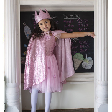 Choosing a dress that is both fashionable and fairy fun can be hard for your little princess. The Pink Butterfly Dress is the answer you're looking for. Be your own shining butterfly in this sparkly pink dress. Soft pink tulle gathers for a full skirt and meets an amazing pink sequin top with tulle sleeve accents. Paired with shimmering pink, glitter-printed wings, this two-piece dress wing combo is sure to delight.