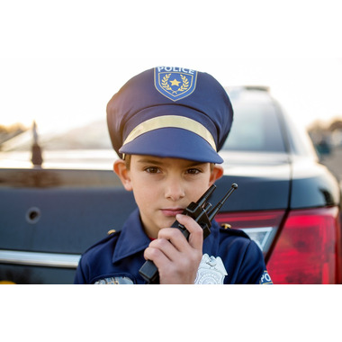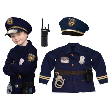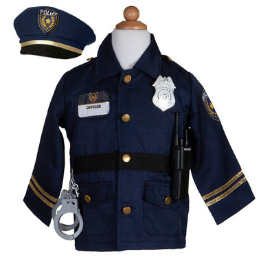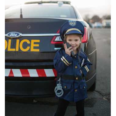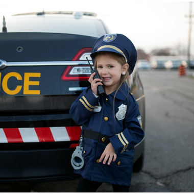 The Police Officer Set includes: Jacket, Hat, Handcuffs, Walkie Talkie, Badge, and Name Tag. It's easy to enforce the law of the land when you have the right tools! Your little police officer will love this official looking Machine Washable Jacket, a police hat, and a shiny police badge. Add the whistle, walkie-talkie with sound effects, handcuffs, ticket and a name tag for personalizing and no one will dare to jay walk in your neighborhood! Fun and interactive, and perfect for creative play of enforcing the rules of play!