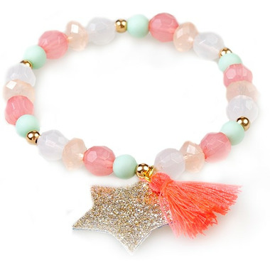 Tassel tastic! This sassy bracelet features a bright orange tassel pendant with a gold glitter star to add some sparkle. The mint bead accents are the perfect compliant to this fashion forward accessory!