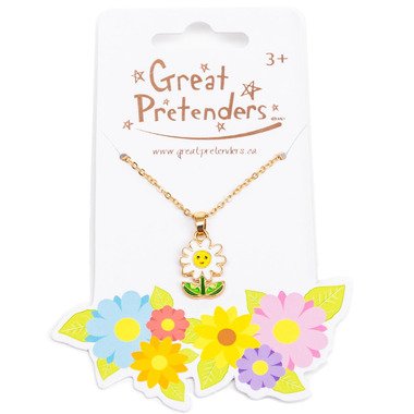 Great Pretenders Spring Flower Necklace is a charming design perfect for year round wear and not just for Spring! Sweet and charming flower pendant comes with an adjustable golden necklace with clasp closure. This adorable necklace will delight all little ones for many years to come!