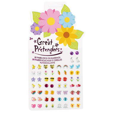Great Pretenders Spring Flowers Sticker Earrings feature 30 pairs of stick on adorable designs! A different pair for everyday of the month! These are fun accessories for any occasion with hearts and gems, smile faces and flowers, and so much more! Delight your little one with this sweet gift of stick on earrings for endless hours of happiness! Perfect Easter basket fiiller.