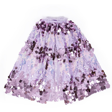 Elevate your little ones style with The 5th Avenue Purple Paillette Cape by Great Pretenders! This stunning cape is crafted with a mix of large and small sequins, featuring rich purple & lilac sequins that alternate in bold stripes down the length of the cape. The shimmering sequins create a dazzling effect with every movement adding a magical touch! The cape is finished with a charming tulle collar, adding a soft, elegant touch to the bold sequins. A convenient hook and loop closure at the neck ensures a secure and comfortable fit. Whether it's for a costume, performance, or to simply add some glamour to everyday adventures, this cape will bring enchanting elegance to your little one's wardrobe!