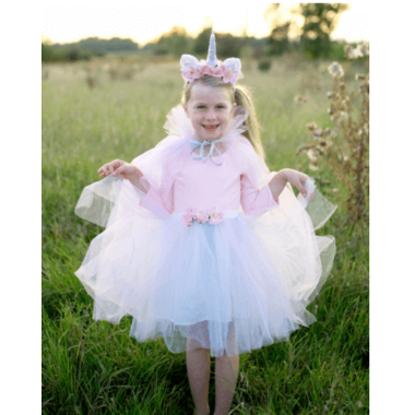 Great Pretenders Unicorn Tutu and Headband is a two piece set which gives your little unicorn the full dazzled magical look. The ultimate unicorn headband is decked out with pink silk flowers, fluffy soft ears and of course the iconic unicorn horn that completes the whole look. A perfect match, the soft tulle skirt features the same silk flowers as on the headband. Multiple colours of tulle combine and gather at the elastic waist for easy on and off during play time. Don't forget, if you let your little unicorn out to play, the skirt is fully machine washable!