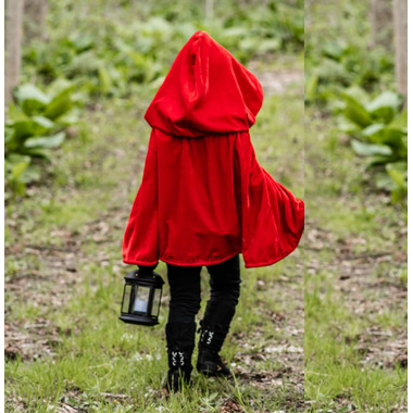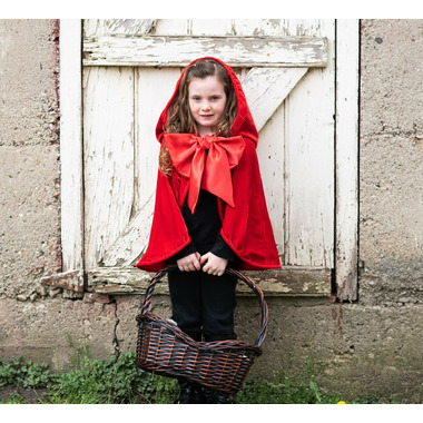 Woodland Storybook Little Red Riding Hood Cape, is a uniquely designed style of this iconic fairytale cape. Made from luxurious heavy crushed velour, a white satin lined oversized hood for greater comfort and a more dramatic look, this is a very deluxe cape. Elegant and comfortable, adorned with a big red bow, this cape is a must have for all LRRH fans! Just like all Great Pretenders dress up, this cape is machine washable!
