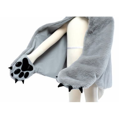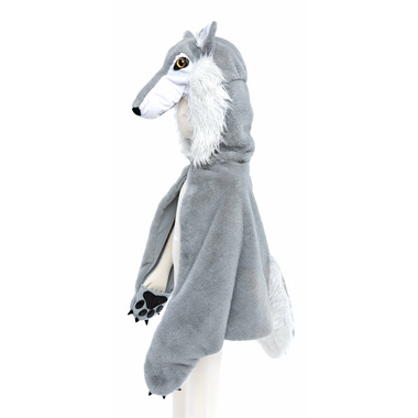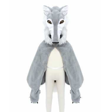 This magnificent wolf cape has been crafted to perfection with a great attention to details. Made with grey short-furry fabric it features spectacular details on the hood and hand pockets. The hood is designed with all iconic wolf details: furry ears, intense brown eyes, black-tip nose, and white fur on both sides. The back of the cape features a furry tail and the front pockets are adorned with wolf paw prints. Your little ones will howl with joy and excitement for the years to come. This cape is made to last for generations and will surely create childhood memories to last a lifetime! Just like all Great Pretenders costumes, this cape is machine washable!