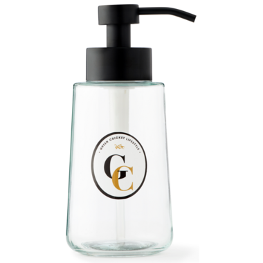 This tapered 450ml glass bottle has a black PVD coated steel pump top suitable for dispensing any liquid product.