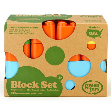 The Green Toys Block Set is the world's most environmentally friendly basic building set, and now it's better than ever! The 18 boldly coloured, lightweight blocks have been re-engineered for easier grip and better stacking action. This unique block set includes a variety of shapes for building castles, towers, or any imaginative structure budding architects can dream up. Plenty of Good Green Fun. Colour combinations may vary.