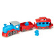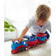 All aboard! The Green Toys Train is pulling out of the station! This sturdy locomotive is ready to chug along from one eco-friendly adventure to the next. Made in the USA from 100% recycled plastic milk jugs that save energy and reduce greenhouse gas emissions, the brightly-colored steam engine pulls two additional cars that link together to form a long train, or easily unhook for stand-alone play. The open wagon is perfect for hauling all kinds of sustainable cargo, while the caboose features a spacious interior and removable roof. Two conductor bear figures are included with the set, encouraging open play as little engineers' imaginations lay the tracks for all sorts of creative narratives. With no metal axles or external coatings, the Green Toys Train is safe and versatile for both indoor and outdoor play, and is dishwasher safe for easy cleaning.