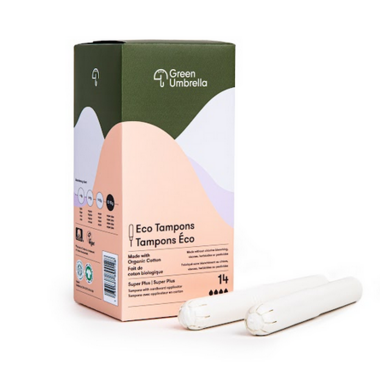 Made with 100% organic cotton. Unlike other tampons made with synthetic materials such as viscose, Green Umbrella tampons are 100% organic cotton certified by ICEA and Global Organics Textile Standard without pesticides or herbicides residues. Bleached without chlorine or dioxin.