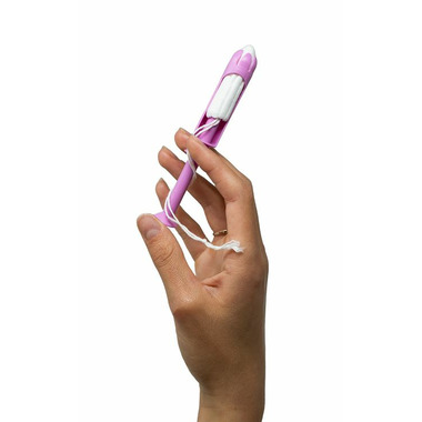 Reusable tampon applicator and case made with medical grade material and 16 applicator free organic Cottonlook tampons made without chlorine, viscose, herbicides or pesticides. This product is non-irritant.