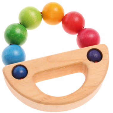 Grimms multi-coloured rainbow boat grasping toy is perfect for little hands, circumference 9 cm.