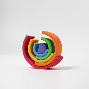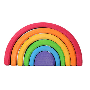 Grimm's Medium Rainbow includes a set of 6 stacking elements that come nested inside each other. The rainbow is a fascinating object for children of all ages. Bring a rainbow home and let your child explore form and colours through creative play. Build bridges, tunnels fences or even small houses!