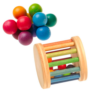 Non-toxic, wooden graspers are an ideal first toy for baby!