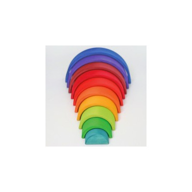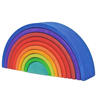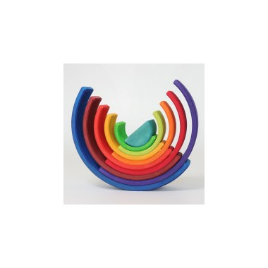 Counting Rainbow by Grimm's: 10-piece rainbow is part of the Grimm´s world of numbers, where games fit perfectly together. Children can discover the more abstract world of numbers in many different ways by playing and by simply using their different senses. They can make sense of what belongs together and thereby discover the world of numbers for themselves. These are not traditional educational toys or materials that are precise and guide toward one correct answer. None of the products have numbers or fractions on them since the main intention is to provide materials that stimulate free play in various ways. There are endless ways to discover the abstract world of numbers by using the different senses.