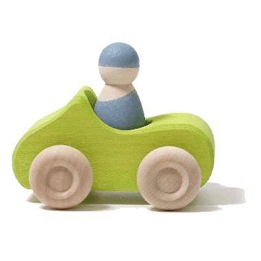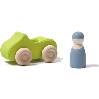 Small Green Convertible Car also includes 1 Peg Doll. This captivatingly simple and off-road wooden convertible car can take a Rainbow Friend on a jaunt into the countryside. Afterward, the vehicles do not have to go into the car wash, but can simply be cleaned with a damp cloth. Recommended for ages 1+.