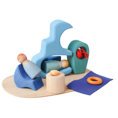The whole world of open ended play in a box: Small World Play In the Woods is an ideal starter set and contains selected parts from various playsets in our range. It offers an exciting mix for you to immerse yourself in and get acquainted with. Special features are the two different sized pebbles, the rollers in two sizes and the cottage with extra holes for decorating. Whats inside: Building worlds, Act out stories, Making faces and figures, Integrating natural treasures, Construct marble runs, Decorate seasonal tables, Threading beads and Stack towers. Grimms' invites everyone to experience a connection with nature and want to whet your appetite for nature-based play. They encourage you to take your toys outside with them or to take objects found outside and integrate them into play. They think nature is a great playground and offers wonderful play material! Includes a 5-piece cottage, H = 15cm, 2 friends, 2 pebbles, 2 rollers, 4 beads, 1 string, 2 plates, 1 felt