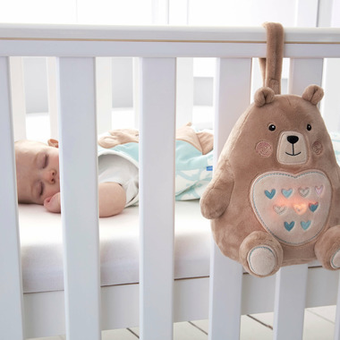 Promising to always be there, the CrySensor technology means that Bennie automatically activates when baby cries, so that he can soothe little ones back to sleep in an instant, without Mum or Dad having to get up. The sounds play for 20 minutes and then Bennie switches to standby mode for three hours, but rest assured he is listening intently and will turn on at any point during standby mode to play either the white noise static or Brahms lullaby sound thanks to the CrySensor function.