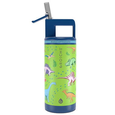 GROSCHE Alpine Kids Flip 'N Sip Water Bottle with Straw Dinosaur