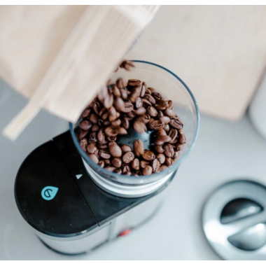 An electric powered burr grinder with 20 grind settings for precise grounds, ranging from coarse to fine. Easily adjust your grind size on the top of the grinder to customize your morning brew experience. The large hopper holds up to 8 oz.
