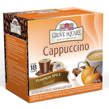 Creamy, steamy and a little dreamy, enjoy Grove Square Pumpkin Spice flavored Cappuccino, reminiscent of your favorite Pumpkin Pie. The ultimate coffee treat you can call your own any time of day, every day. Treat yourself with a mildly sweet, creamy Pumpkin Spice flavored, hot cup of cappuccino today!