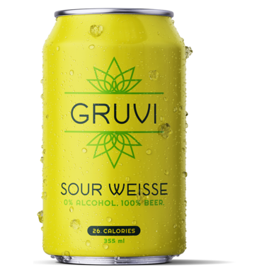 Gruvi's Sour Weisse contains less than 0.5% alcohol, 100% beer. Contains only 26 calories. Brewed in Canada. Comes in a pack of 4.