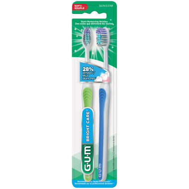 Discover a toothbrush that goes beyond everyday cleaning-The GUM Bright Care Toothbrush delivers up to 28% whiter teeth by effectively removing surface stains, helping your natural smile shine. Its Brightline grip bristles are specially designed to gently remove stains while still being gentle on your enamel. With bristles shaped to clean below the gumline, this toothbrush reaches those crucial areas where plaque hides, supporting healthy gums as well as teeth. A raised tip ensures you can comfortably reach and clean the back teeth, often the toughest spots to brush.