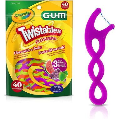Three twisted flavors keep flossing time fun and engaging. A newly designed handle gives kids a better grip and longer reach, with fluoride-coated twisted dental floss.