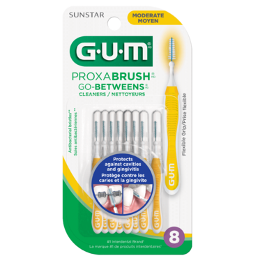 GUM Proxabrush Interdental Cleaners are easy-to-use between teeth cleaners clinically designed to remove plaque and food particles from any size interdental space that brushing alone cannot reach. This reusable oral care solution has unique antibacterial bristles that help keep the brush clean between uses.