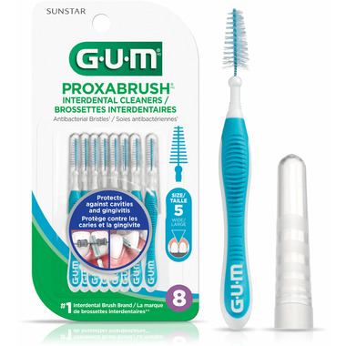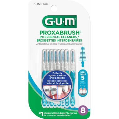 GUM Proxabrush Interdental Cleaners are easy-to-use between teeth cleaners clinically designed to remove plaque and food particles from any size interdental space that brushing alone cannot reach. This reusable oral care solution has unique antibacterial bristles that help keep the brush clean between uses.