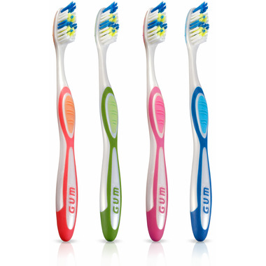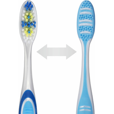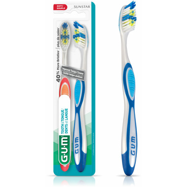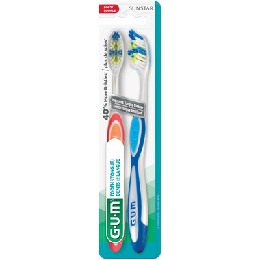 Elevate your oral care routine with the GUM Tooth & Tongue Toothbrush, designed to deliver a comprehensive cleaning experience that targets bad breath. Featuring 40% more bristles*, this toothbrush is crafted to reach and clean between teeth without causing discomfort to the gums. The tongue cleaner has integrated ridged scrapers providing better cleaning and helping to reduce bad breath for complete mouth clean! Available in both soft and medium bristle textures, you can customize your brushing experience for optimal comfort. With GUM, achieve a cleaner mouth and fresher breath with every brush.
