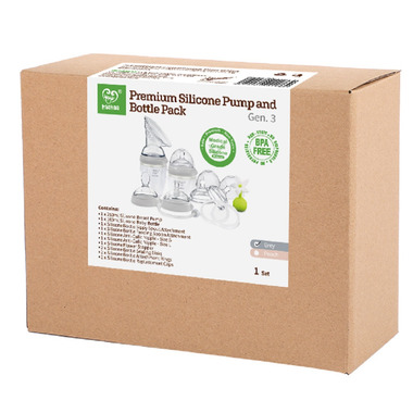 Simplify your breastfeeding journey and collect the entire Gen. 3 Silicone Pump and Bottle Series in the Haakaa Generation 3 Premium Pack! This pack has been designed to grow with your baby. Express, feed and store milk easily and effectively with Haakaa’s world-first 5-in-1 feeding system! With a quick twist of the top, you can swap out your bottle attachment for any of the range of optional interchangeable attachments included in this box! We have our famous breast pump flange that lets you express directly into the bottle, a feeding spoon dispenser for when your baby moves on to solids, a sippy bottle top to help your independent toddler transition from a bottle to a cup and a sealing disk to preserve any leftover food or milk after feeding.