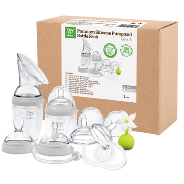 - 1 x Gen. 3 250ml Silicone Breast Pump. Haakaa's famous Haakaa Silicone Breast Pump has been reinvented again! We have kept the same simple and effective design that you know and love, except now you can express directly into a detachable silicone bottle! Made from food grade silicone, this compact pump is perfect for long-distance plane or car rides, or simply anywhere you would like to express quickly and discreetly.