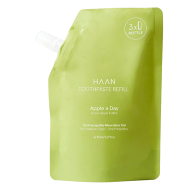 Use HAAN refill pouches to save plastic and water and ensure you don't run out! A highly concentrated toothpaste, enriched with key ingredients like prebiotics & xylitol. This HAAN toothpaste gently cleanses your teeth & supports your oral microbiome, all while neutralising plaque and reinforcing enamel to prevent sensitivity. Enjoy a fresh apple & mint flavor.