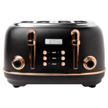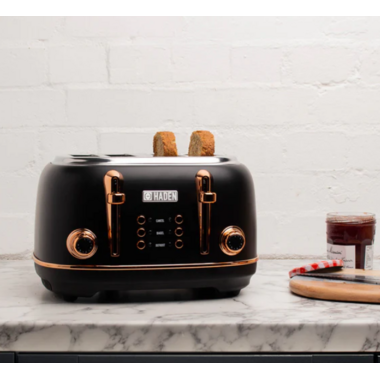 Haden Heritage 4-Slice Wide Slot Toaster Black and Copper