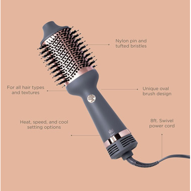 Really impressed with this brush/blower. I had purchased another brand and did not like the way my hair looked and it cost twice as much. The swivel end is always helpful so the cord doesn’t get too tangled up. It really does add volume to my hair and my hair does not look damaged or dry. I have very fine hair so any volume helps! The tip that you hold onto does not get hot unlike the other brand. Very handy and painless…lol! I would definitely recommend this one. I’m pretty happy I bought it.