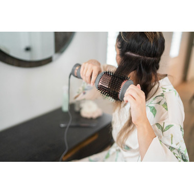 Get ready to be wowed with the perfect blowout in minutes with the Hairitage by Mindy Up In The Air Volumizing Brush. Whether you want a sleek, bouncy, or wavy look, this volumizing brush will have you out the door with perfect hair every time. The built-in cool shot technology helps lock-in and extend styles for days. Say goodbye to bad hair days and hello to shiny, silky hair! Recommended for all hair types & textures.
