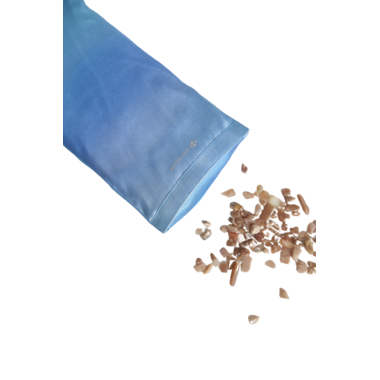 Made of: Cover: 100% silk, sewn in China, Casing: 100% organic cotton, sewn in India, Filling: 1% lavender (France), organic wheat berry (Canada), natural gemstones (Brazil)