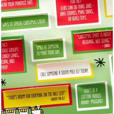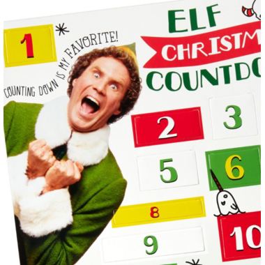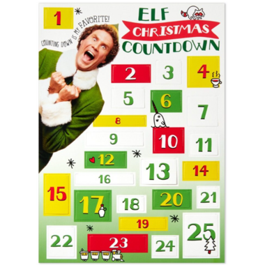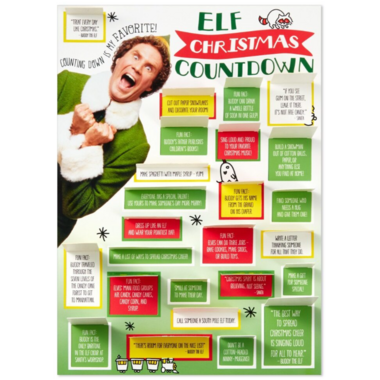 • Advent calendar features a fun photo of Will Ferrell dressed as Buddy the Elf with colourful squares that reveal trivia, movie quotes and holiday activities to do each day leading to Christmas