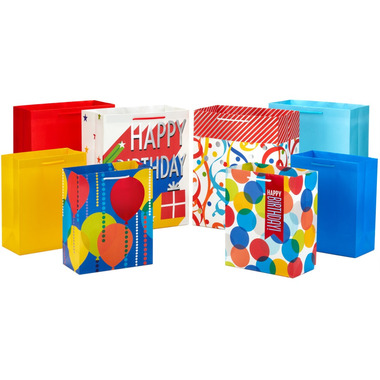 Celebrate birthdays, graduations, retirements and other special occasions with this set of 8 assorted gift bags with handles. Balloons, confetti streamers, polka dots and solids are perfect for celebrating a variety of occasions throughout the year, and 2 sizes let you wrap gifts ranging from clothing and books to electronics and toys. Great for kids, grandchildren, adults, teachers, siblings and more.
