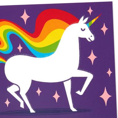 Send a cheerful greeting to someone who loves unicorns with this fun birthday card featuring a rainbow and metallic foil design. Pair with Hallmark's line of gift bags and wrapping paper for an unbeatable birthday package. The Hallmark brand is widely recognized as the very best for greeting cards, gift wrap, and more. For more than 100 years, Hallmark has been helping its customers make everyday moments more beautiful and celebrations more joyful.