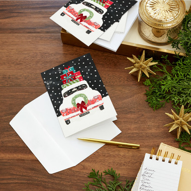 Delight your holiday card recipients this year with these fun greeting cards featuring an iconic vintage red truck, and a warm message inside. With 16 cards and envelopes, this pack includes just the right amount for sharing holiday greetings with the friends and family closest to you. Buy several packs to send a Christmas wish to everyone on your list. The Hallmark brand is widely recognized as the very best for greeting cards, gift wrap, and more.