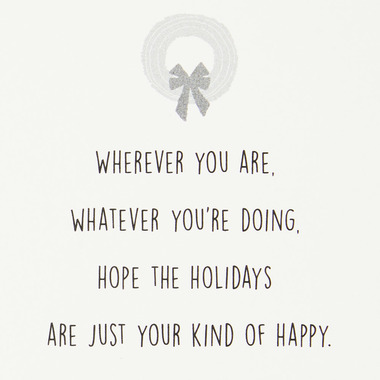 Inside reads: "Wherever you are, whatever you're doing, hope the holidays are just your kind of happy."