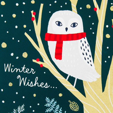 - Cards feature whimsical wintry designs including reindeer, owls, festive lettering, snowmen, Christmas sweaters, skiing penguins, and more