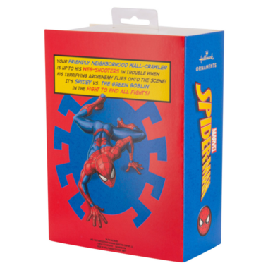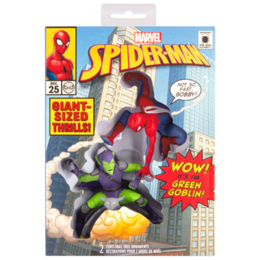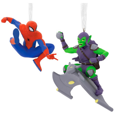 Add some amazing action and adventure to your holidays with this set of two Marvel Christmas tree ornaments featuring the iconic web-slinger Spider-Man and his archenemy the Green Goblin on his Goblin Glider. The coordinating decorations come packaged in a delightful, themed storage box that opens and captures the spirit of the classic comics. Hallmark Ornaments are a great way to commemorate hobbies, life events and individual interests in entertainment, sports and more. Each festive and collectible ornament is perfect for sharing with family and friends.