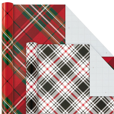 Hallmark Christmas Wrapping Paper Bundle with Cut Lines on Reverse Plaid