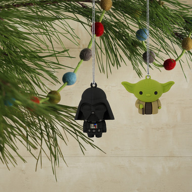 Incorporate a little surprise into the 12 days leading up to Christmas with this fun Star Wars countdown calendar kit. The cardstock tabletop Christmas tree features spaces to hang twelve mini, shatterproof Christmas tree ornaments. Each of the included ornaments features a beloved Star Wars character or ship: Darth Vader, Stormtrooper, Wicket the Ewok, Jawa, Chewbacca, R2-D2, C-3PO, BB-8, Yoda, TIE Fighter, Millennium Falcon, and X-Wing. Perfectly sized for a child's room.