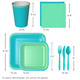 - BOLD COLORS: This set of birthday party dinnerware features a bold color combination - Sea Green and Aquamarine Blue- perfectly curated to impress in person, in photos and on social