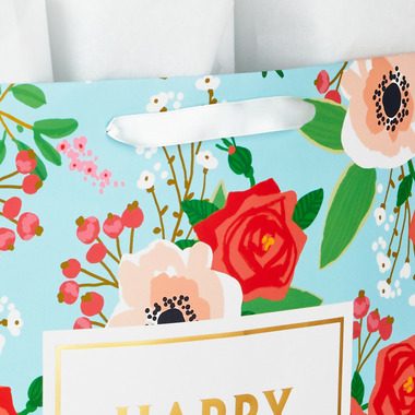 Show the moms in your life how much they are loved. This cheerful gift bag features a bold blue background with vibrant red and pink flowers with green leaves and "Happy Mother's Day" in gold foil lettering. Purchase includes extra large gift bag with 5 sheets of white tissue paper to make wrapping presents for moms, grandmas, nanas, new moms and friends quick and easy.